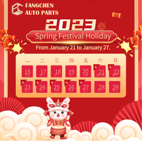 Dear customers and friends, the Chinese New Year is coming. All colleagues of Fangchen Auto Parts wish customers and friends at home and abroad a happy holiday and a healthy family.
